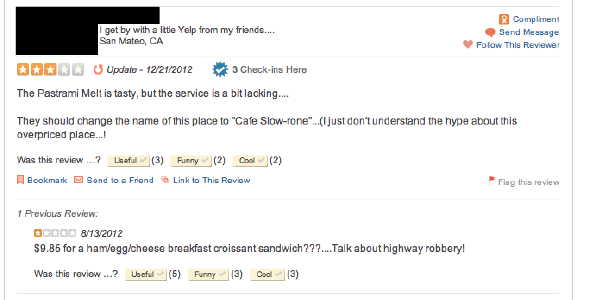 | Reviews like these will not just be seen by potential patrons, but also lower the overall Yelp rating of the business. |